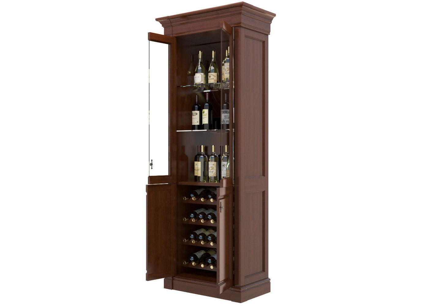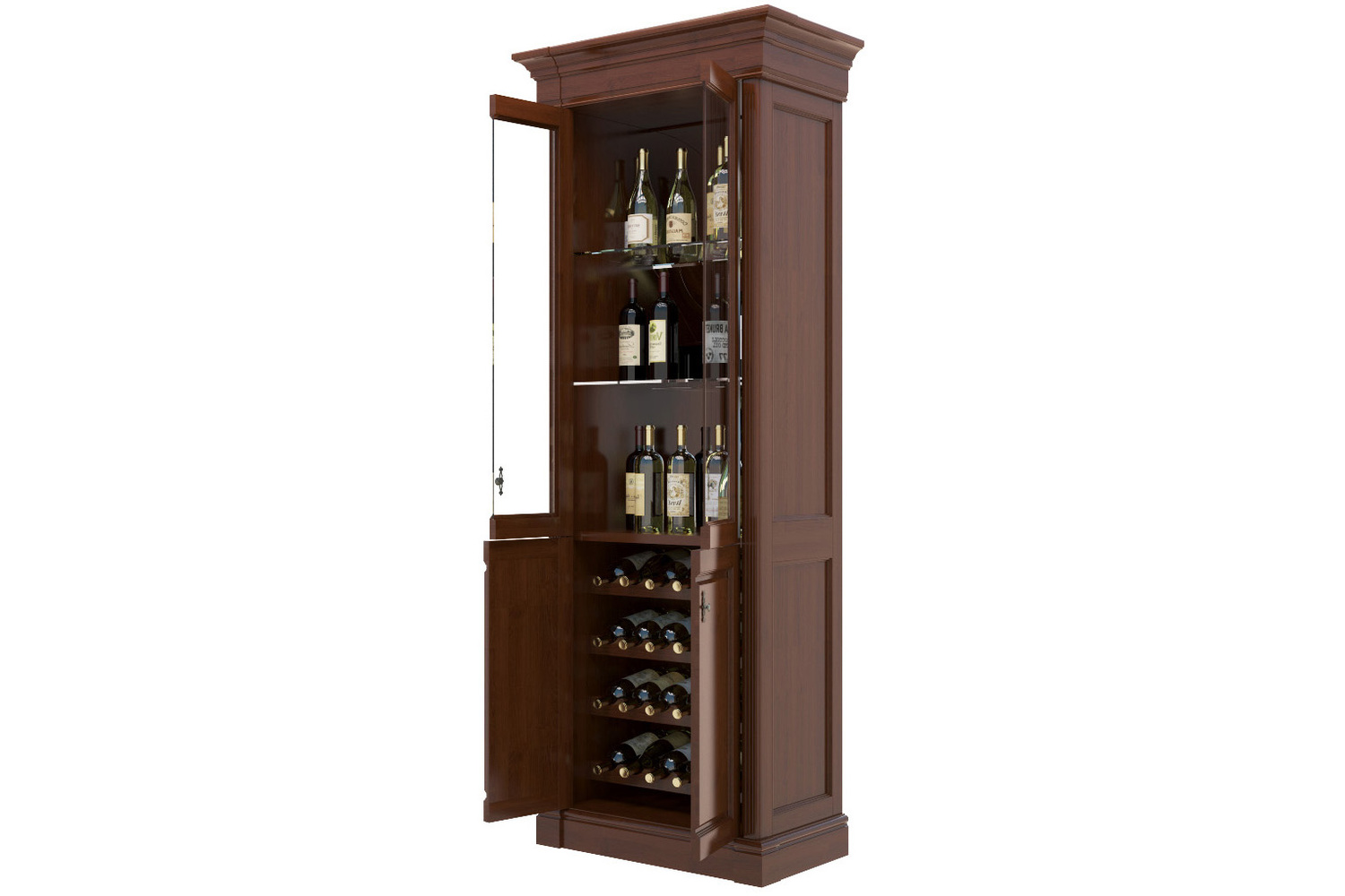 Массив бука. Сверху шкаф обрамлен многоуровневым карнизом высотой 140мм, Лак полиуретановый и имеет три слоя грунтовочных и два слоя финишных.