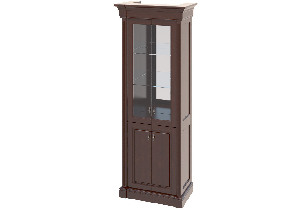 Состоит из: каркаса, задней стенки, карниза, полки, основания, двух низких дверей и двух средних дверей со стеклом